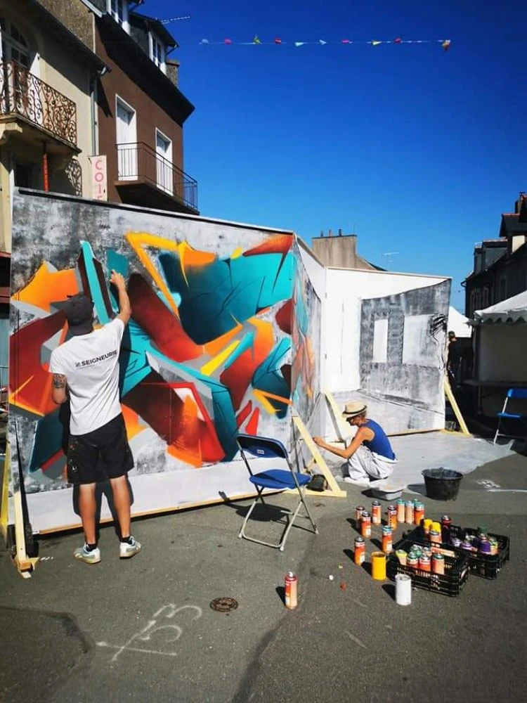Julien a très bien réussi à retranscrire notre charte graphique sur le pignon de notre bâtiment professionnel à Saint SAMSON sur RANCE. Travail d'artiste que le mélange des couleurs pour un rendu très lumineux. Défi relevé! Bravo et Merci.