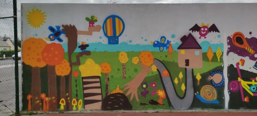 Julien a très bien réussi à retranscrire notre charte graphique sur le pignon de notre bâtiment professionnel à Saint SAMSON sur RANCE. Travail d'artiste que le mélange des couleurs pour un rendu très lumineux. Défi relevé! Bravo et Merci.