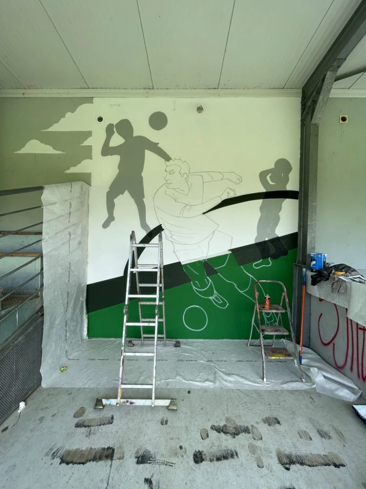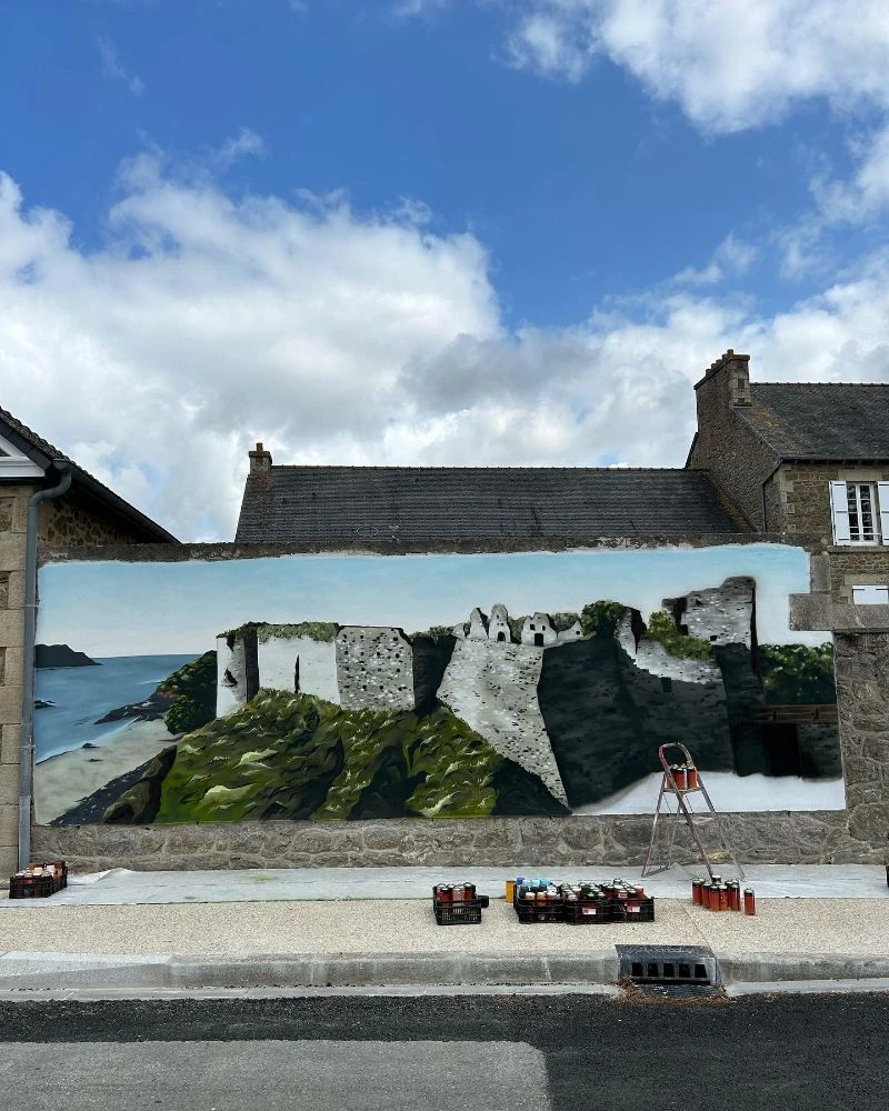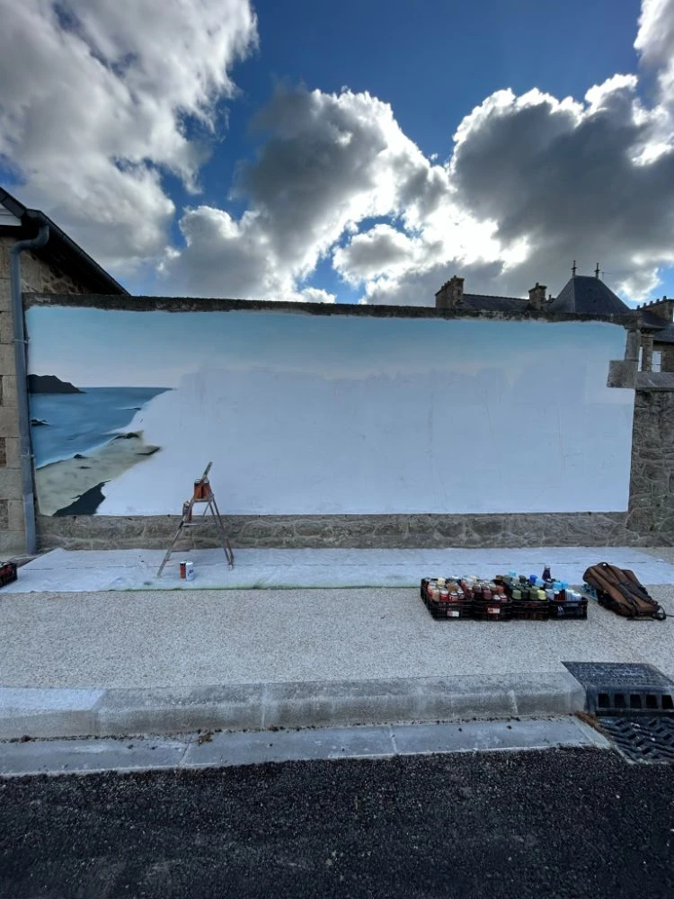 Julien a très bien réussi à retranscrire notre charte graphique sur le pignon de notre bâtiment professionnel à Saint SAMSON sur RANCE. Travail d'artiste que le mélange des couleurs pour un rendu très lumineux. Défi relevé! Bravo et Merci.