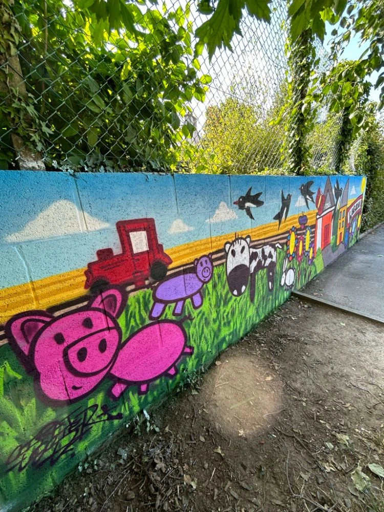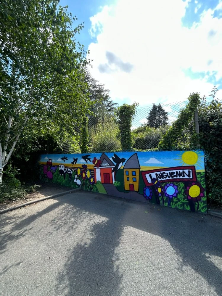 Julien a très bien réussi à retranscrire notre charte graphique sur le pignon de notre bâtiment professionnel à Saint SAMSON sur RANCE. Travail d'artiste que le mélange des couleurs pour un rendu très lumineux. Défi relevé! Bravo et Merci.