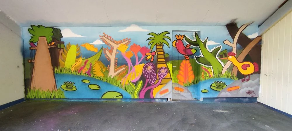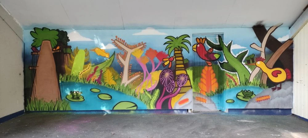 Julien est intervenu dans mon studio Nathur&Fly. Tout l'intérieur de mon studio la peinture le Graf représentant ma discipline Aérial Yoga. C'est un vrai succès tout mes clients adorent. Julien EST L ARTISTE QU'il...