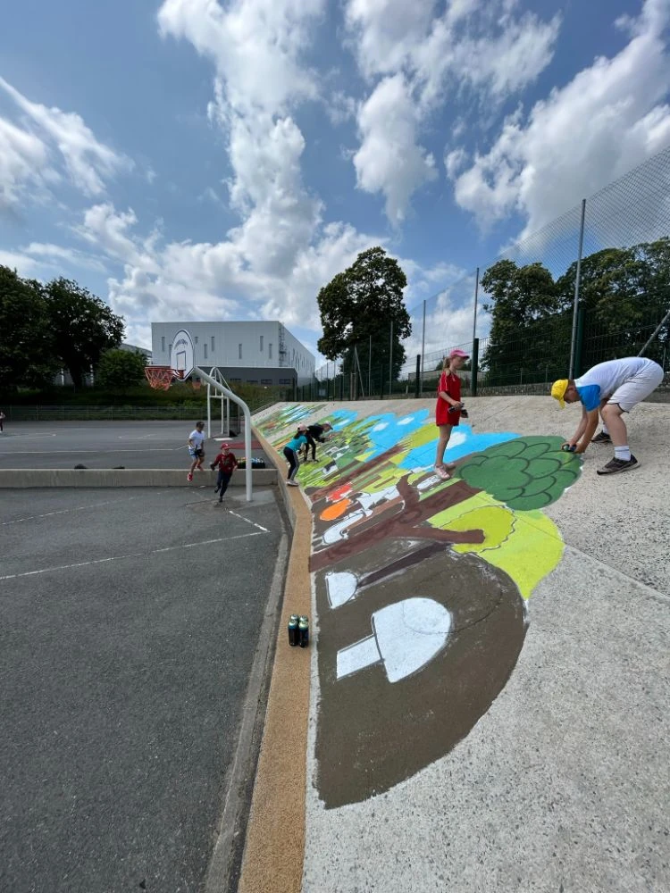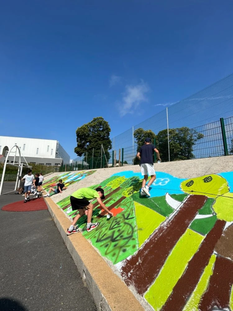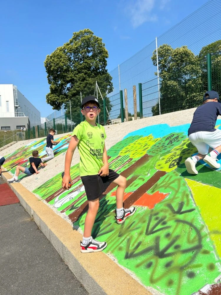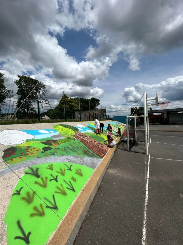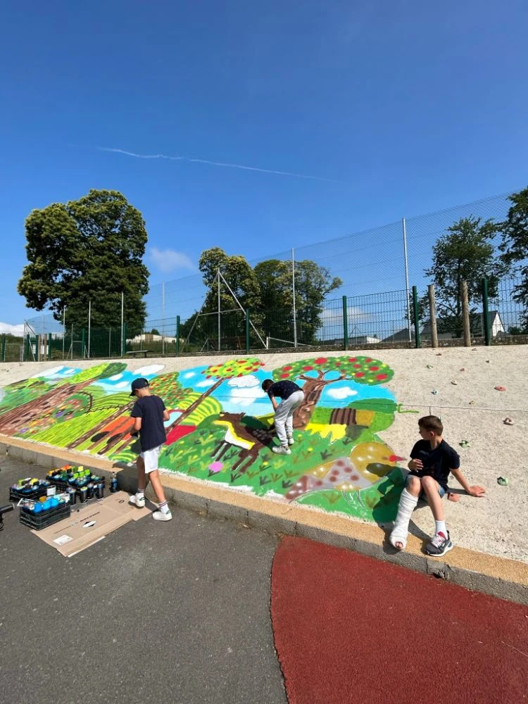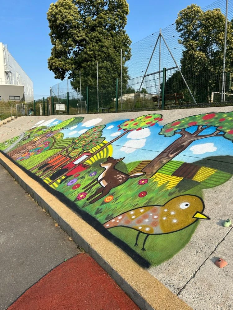 Julien a très bien réussi à retranscrire notre charte graphique sur le pignon de notre bâtiment professionnel à Saint SAMSON sur RANCE. Travail d'artiste que le mélange des couleurs pour un rendu très lumineux. Défi relevé! Bravo et Merci.