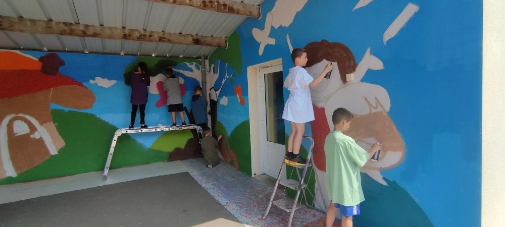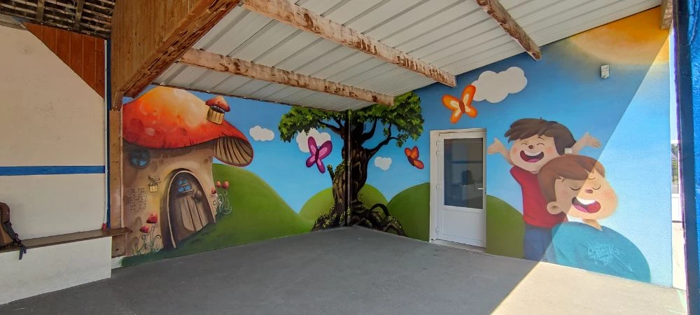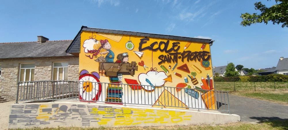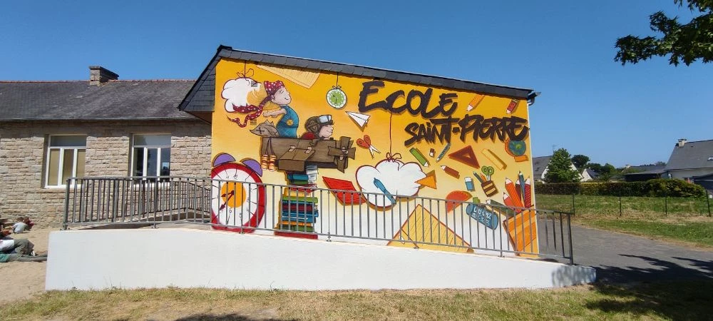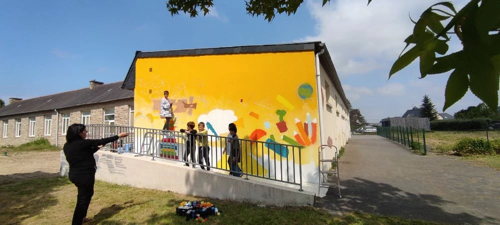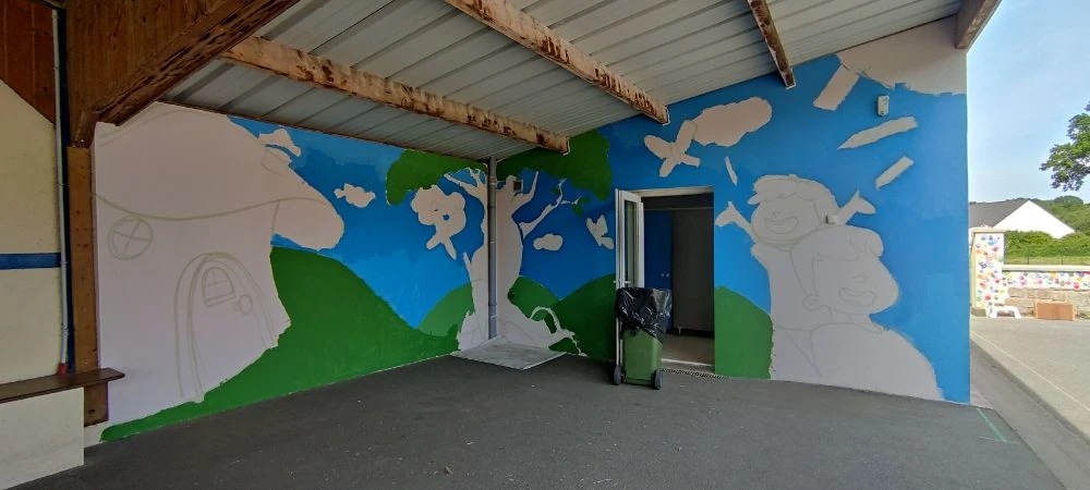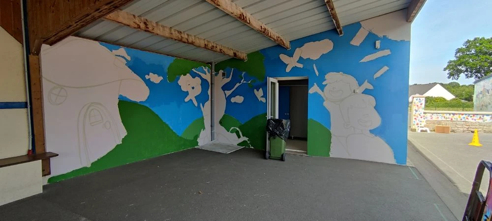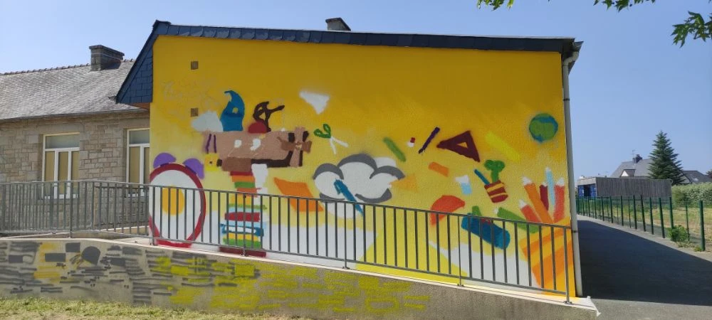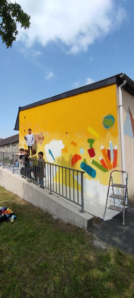 Julien a très bien réussi à retranscrire notre charte graphique sur le pignon de notre bâtiment professionnel à Saint SAMSON sur RANCE. Travail d'artiste que le mélange des couleurs pour un rendu très lumineux. Défi relevé! Bravo et Merci.