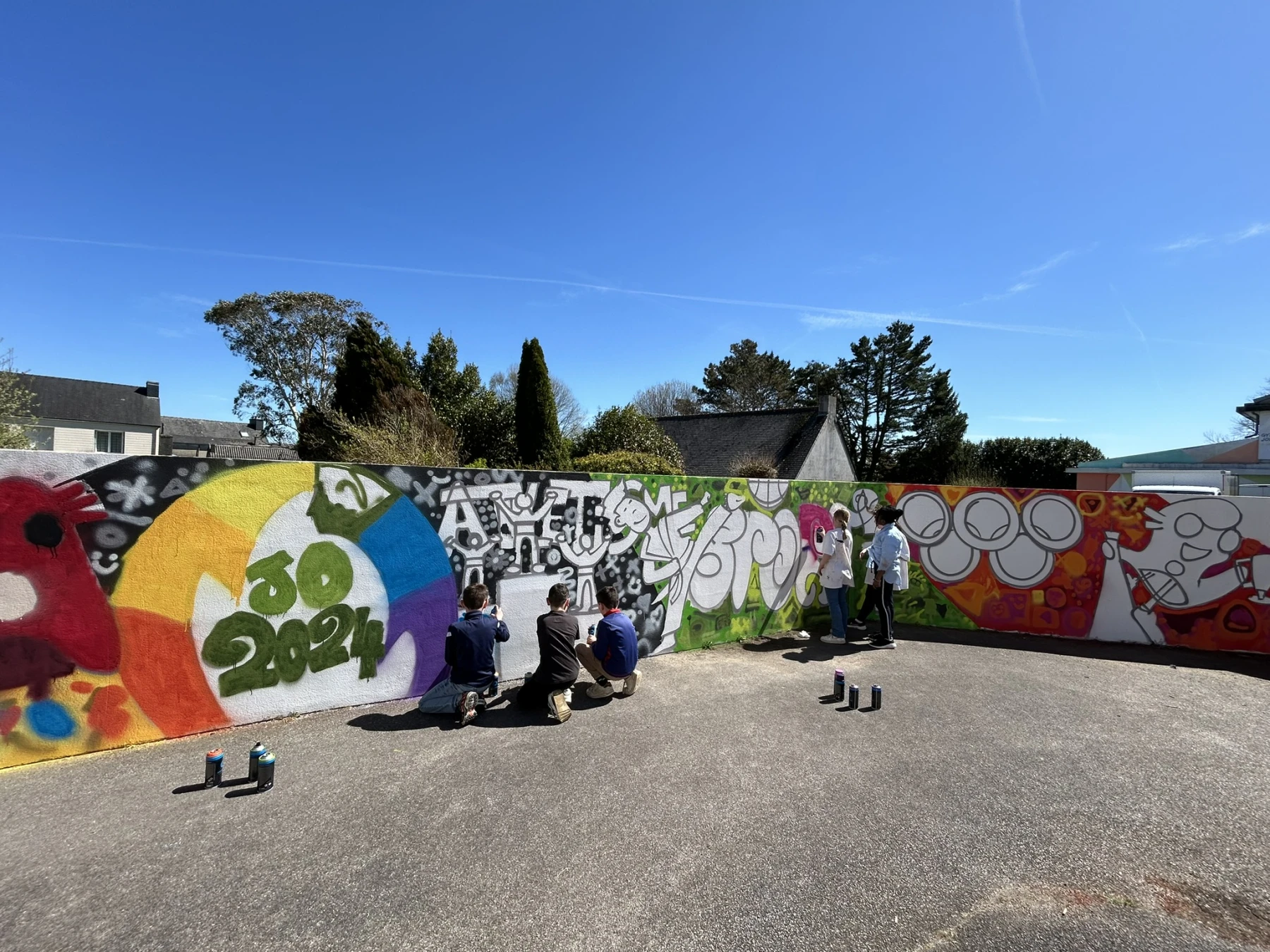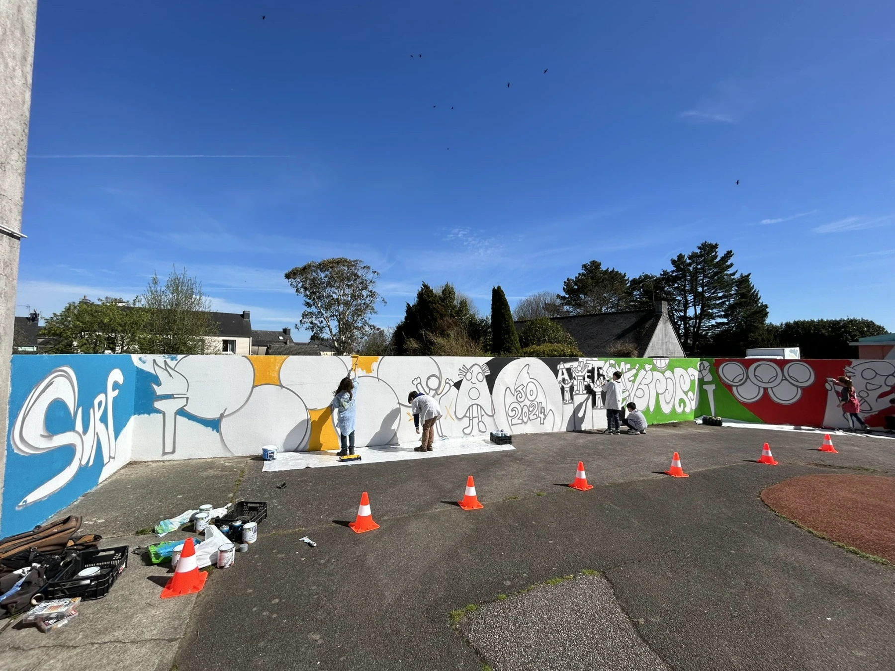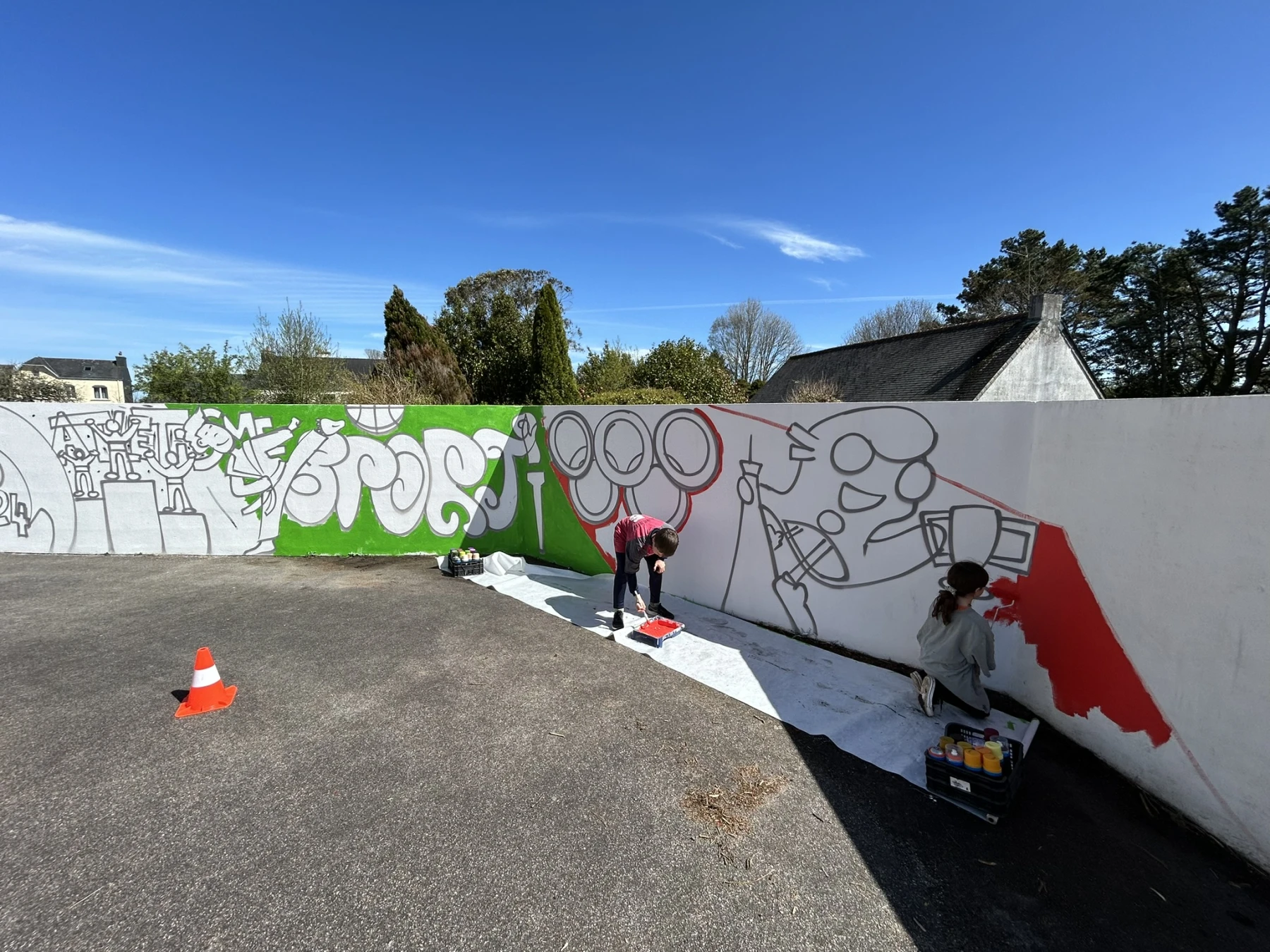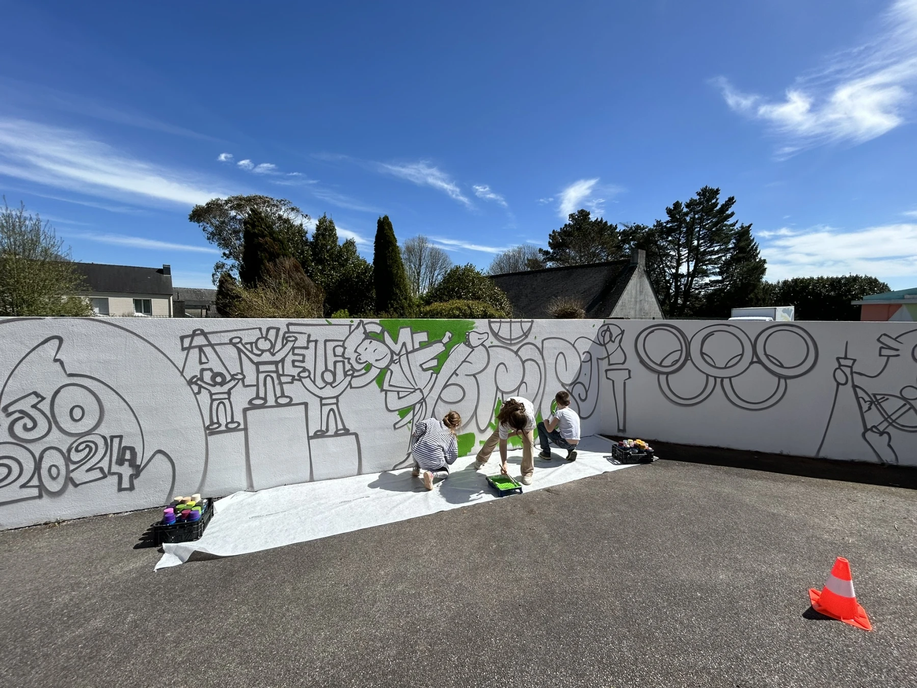 Réalisation d'un atelier graffiti avec l'école primaire de Scaër (29) sur le thème des jeux olympiques avec les CM1 et CM2