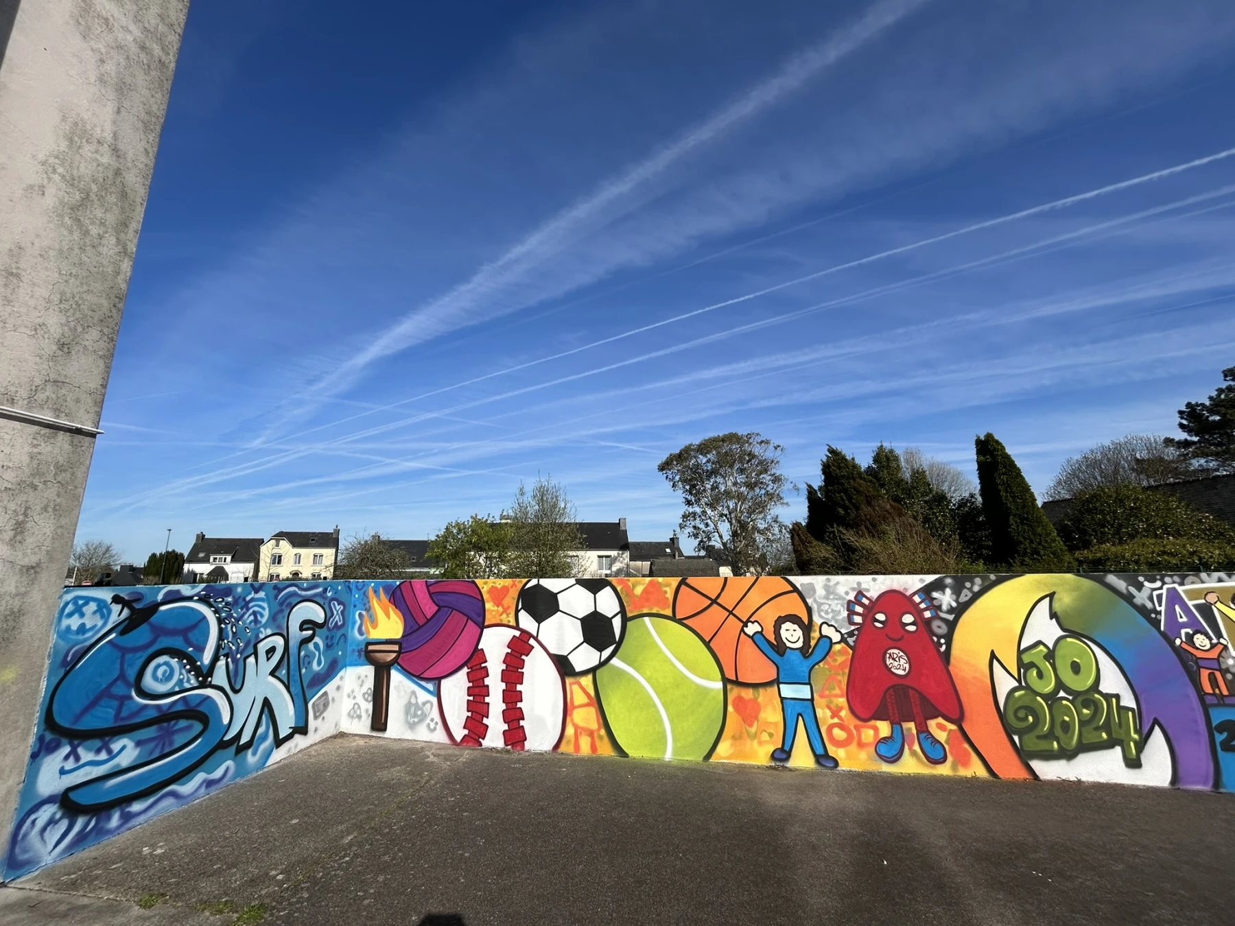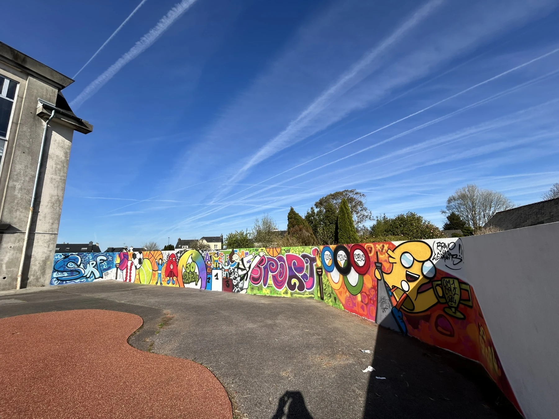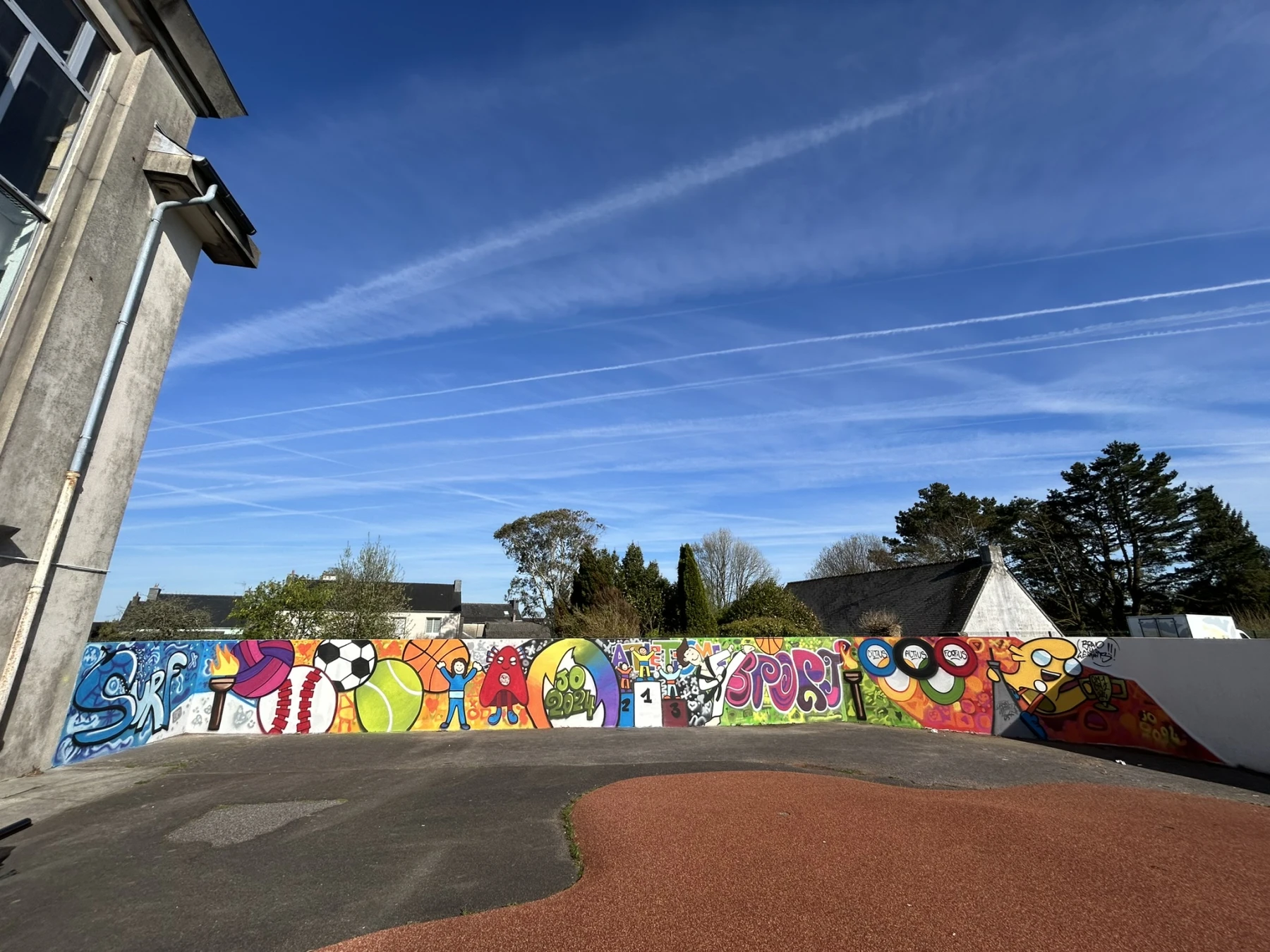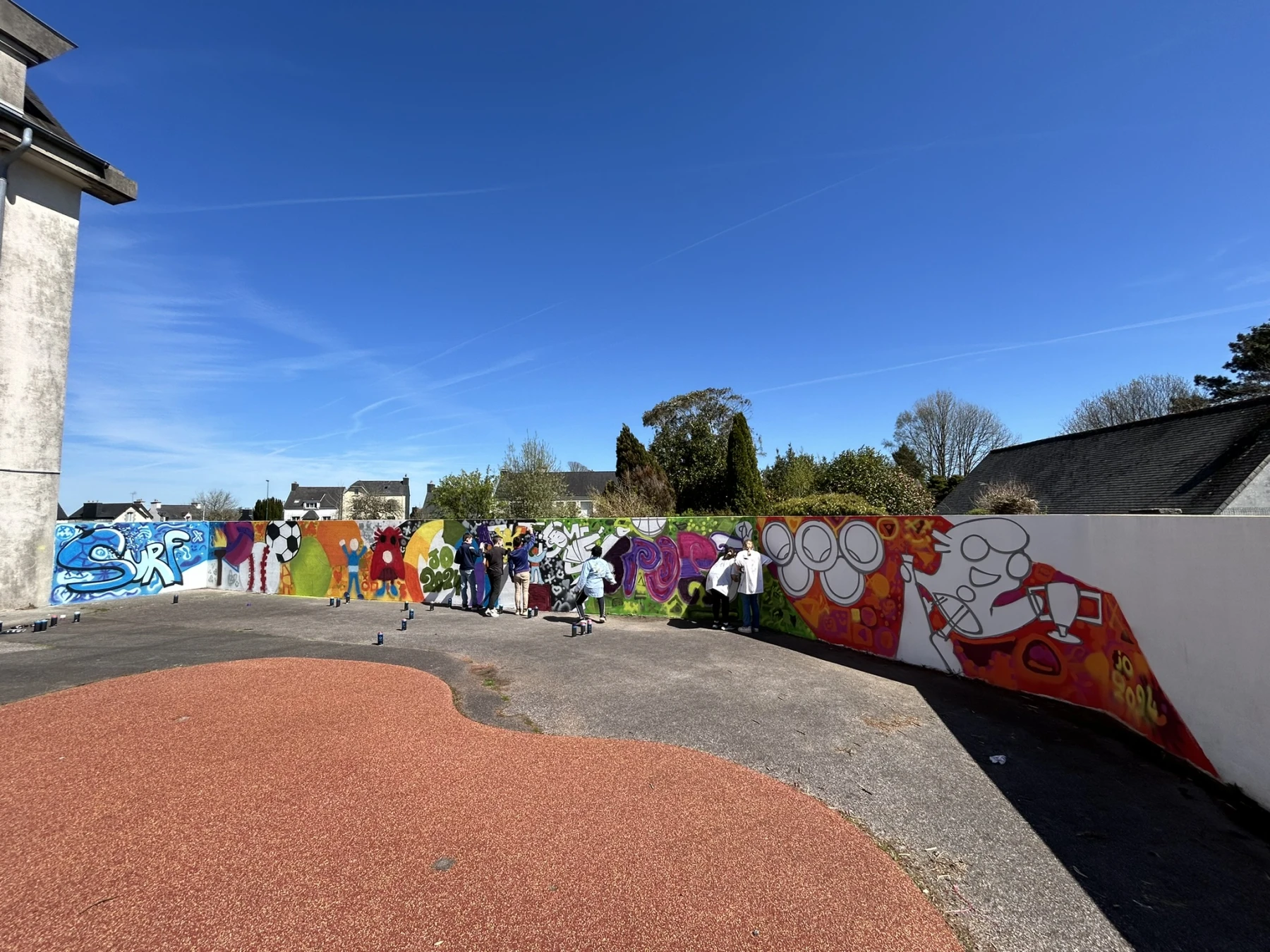 Réalisation d'un atelier graffiti avec l'école primaire de Scaër (29) sur le thème des jeux olympiques avec les CM1 et CM2