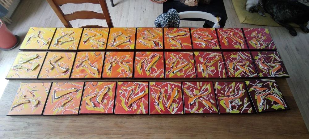Pour Noël, j'ai commandé à Julien 1 petite toile pour chacun de mes 3 neveux. Graff de leur prénom avec un petit personnage (Mario, Dragon Ball et Pikatchu), choix de la couleur de fond. Le rendu est topissime et il a été d'une rapidité!!! Je...
